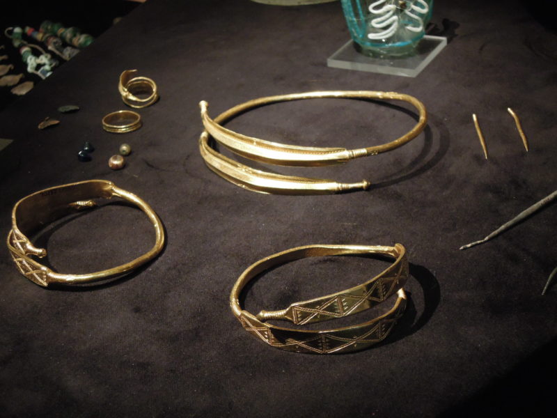 Bilde: Guldföremål från Tuna, Badelunda, utställda på Västmanlands läns museum. Fra pilgrimspoddens avsnitt om Vikingatidens härskare och bortglömda kvinnor