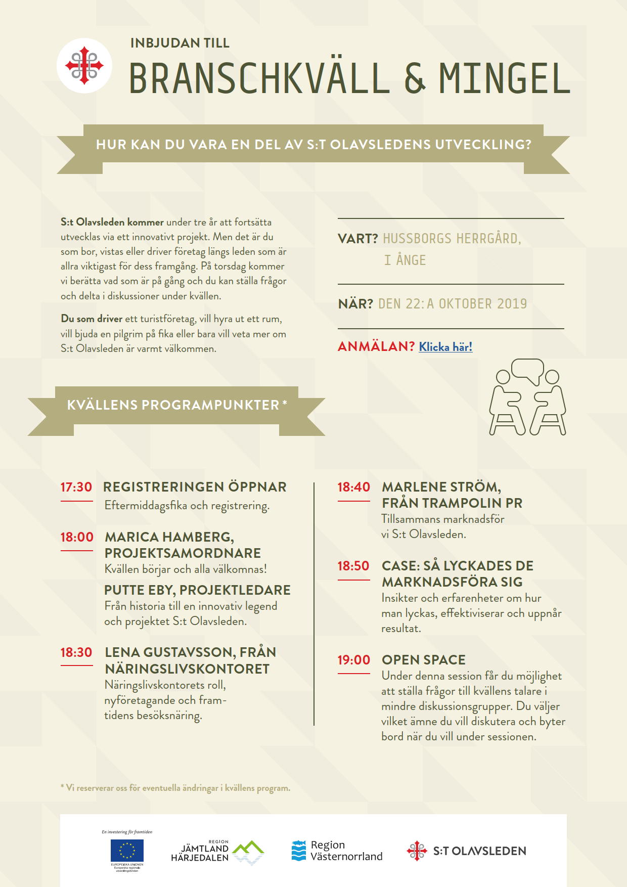 En av våra aktiviteter denna höst har därför varit S:t Olavsleden på turné där vi inbjudit till branchkvällar i samtliga sex svenska kommuner. Fokus på turism- och landsbygdsföretag erbjudit i samarbete med Trampolin PR och Länsstyrelsen ett antal utbildningar inom kommunikation och marknadsföring.